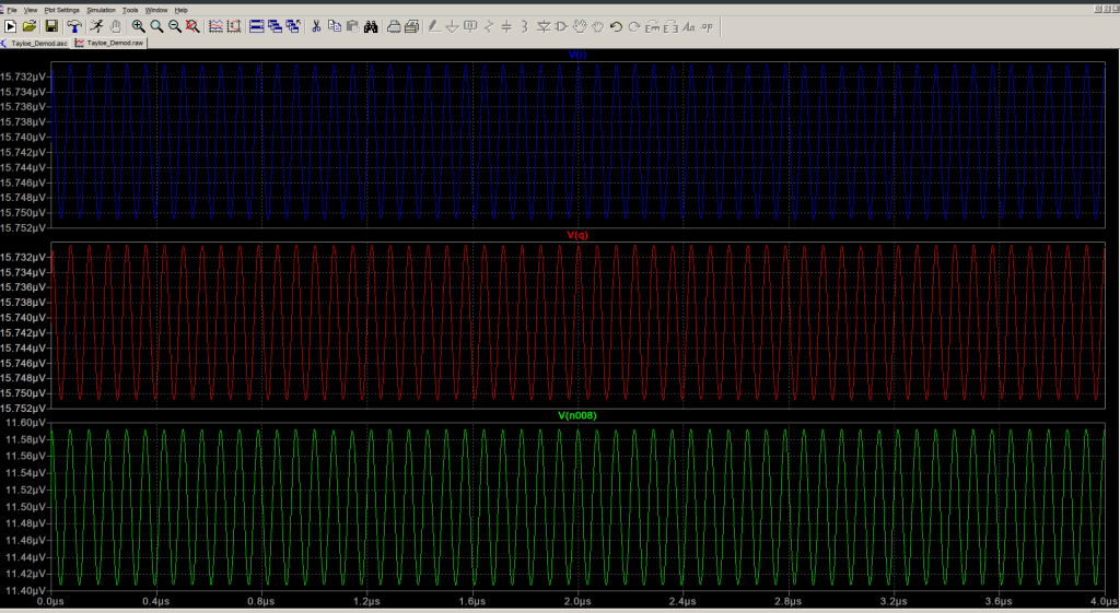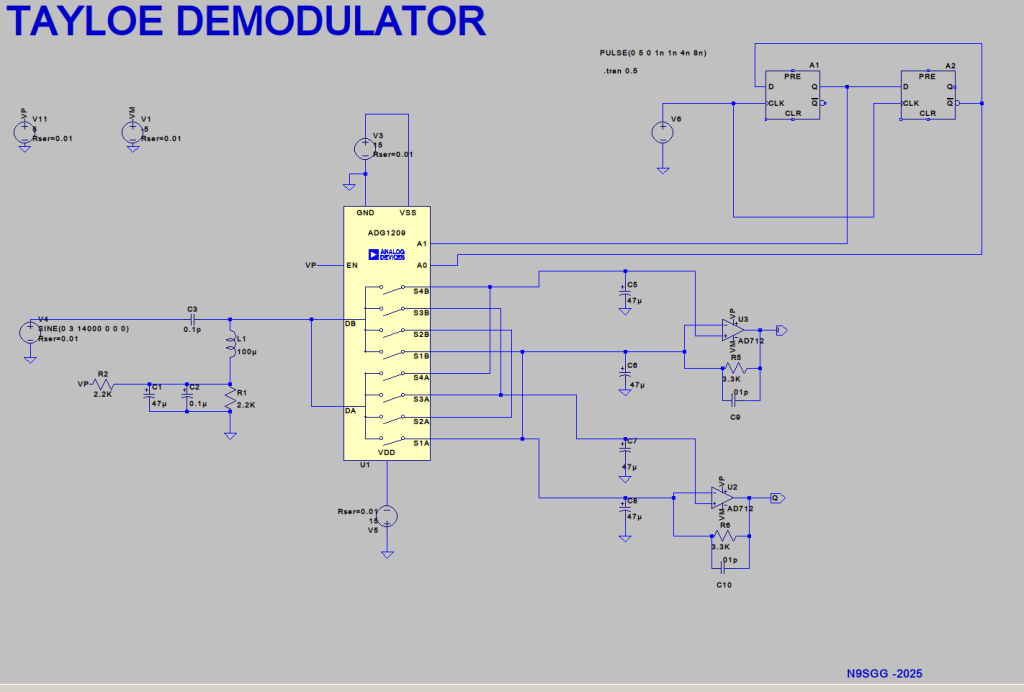 This article is the first in a series, documenting my journey building a Tayloe Demodulator as an HF radio receiver. This article focuses on a Spice simulation of a Tayloe demodulator.